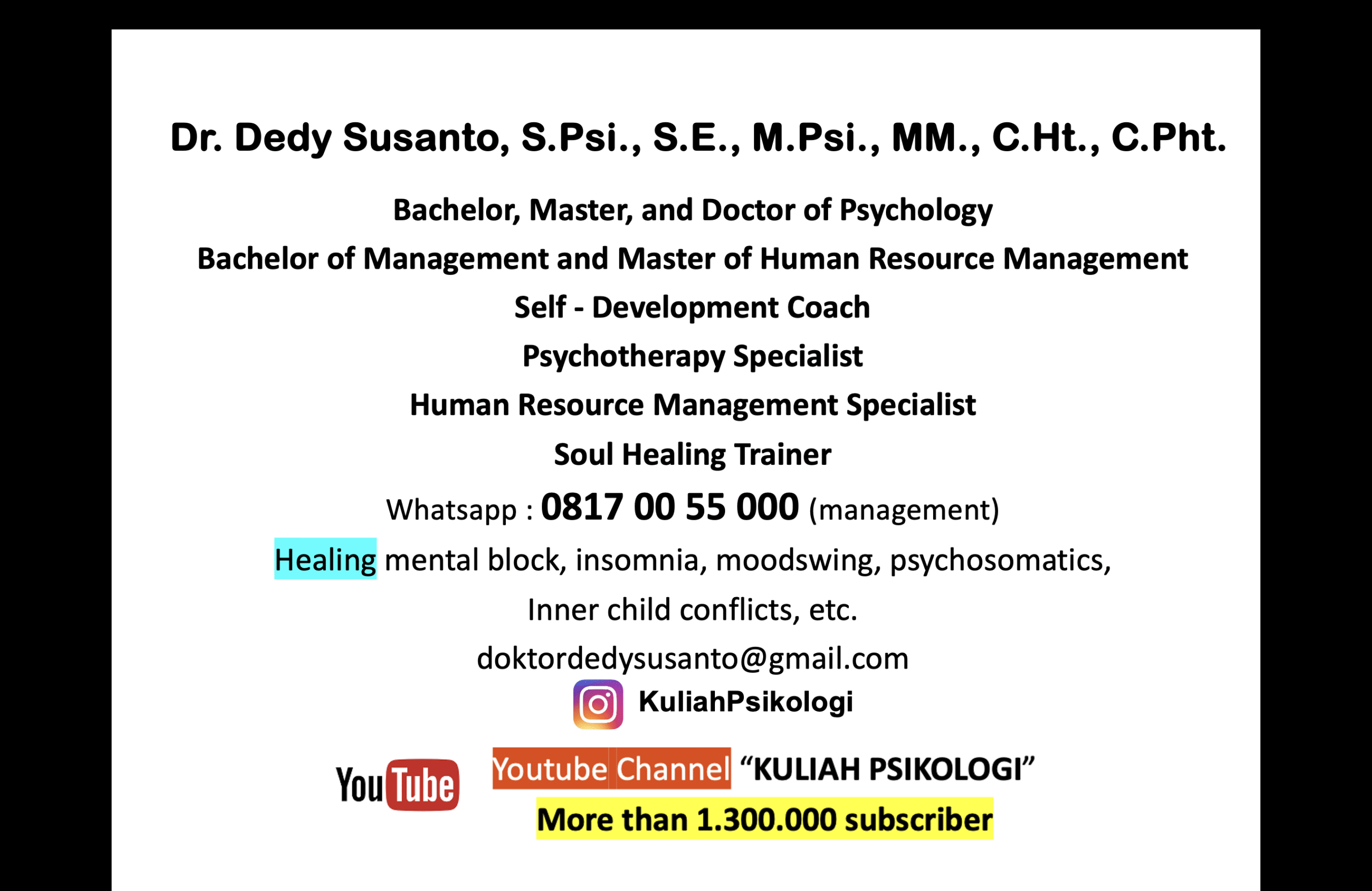 Bagi Bapak / Ibu yang ingin mengundang Dr Dedy Susanto untuk memberikan training dan terapi ke SDM yang Bapak / Ibu pimpin mohon bisa wa kami di 0817 00 55 000 atau email ke rahasia777@gmail.com